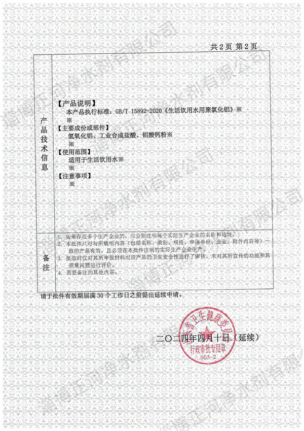 應(yīng)用領(lǐng)域:該產(chǎn)品專用于生活飲用水的凈化處理,具有凈化效率高、沉降速度快、鋁殘留率低的特性。